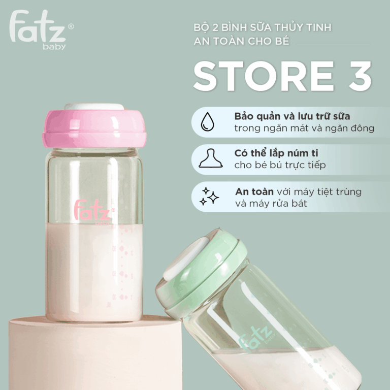 - Bình trữ sữa thủy tinh màu xanh Store 3 – giải pháp trữ sữa hiện đại, bền bỉ và tiện lợi.