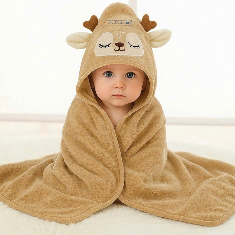 - Mũ được thêu hình đáng yêu, với tai và sừng 3D nổi bật, tạo sự thích thú cho bé và mang lại vẻ ngoài cực kỳ dễ thương. Bé sẽ cảm thấy thoải mái, ấm áp và an toàn khi được quấn trong chiếc khăn mềm mại này.