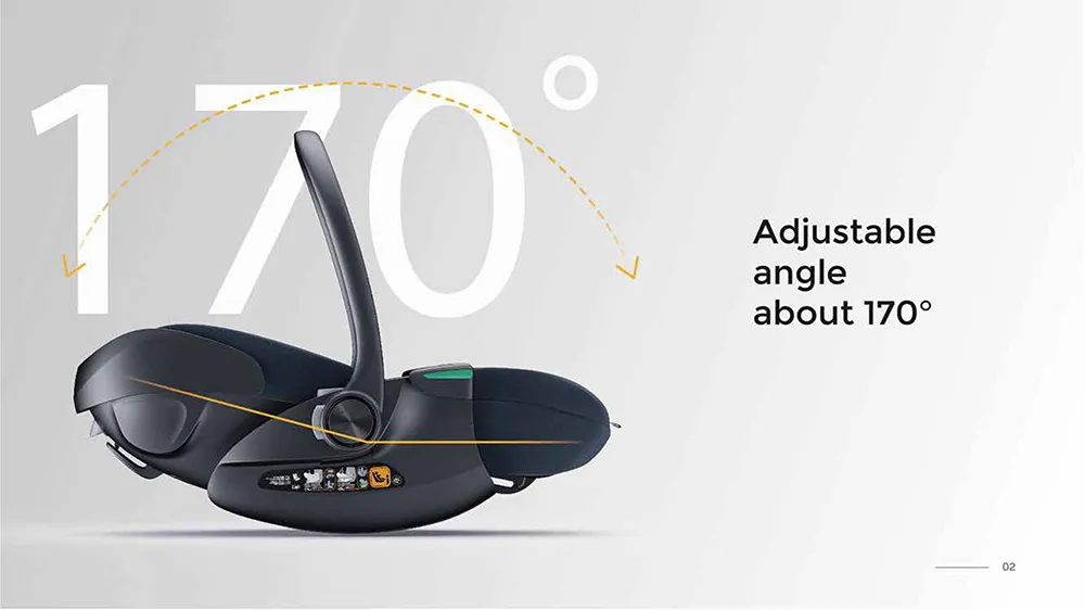 - Ghế có thể ngả sâu đến khoảng 170°, tạo tư thế nằm thoải mái cho bé, đặc biệt phù hợp cho trẻ sơ sinh cần hỗ trợ nâng đỡ cột sống. Góc ngả rộng giúp bé thở dễ dàng hơn và ngủ ngon hơn ngay cả khi di chuyển trên ô tô.