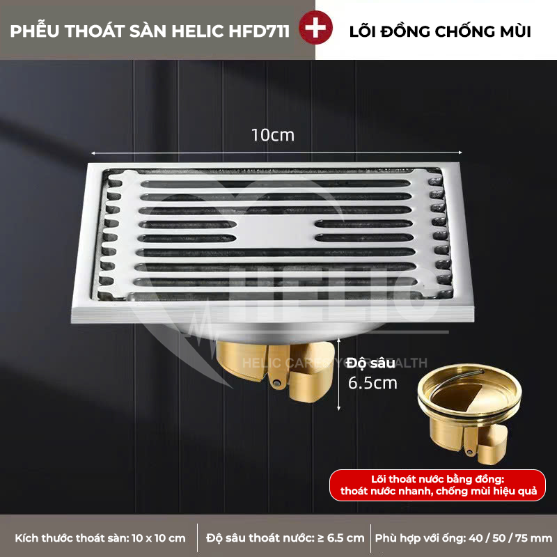 - Tên sản phẩm: Phễu thoát sàn Helic HFD711 10x10cm