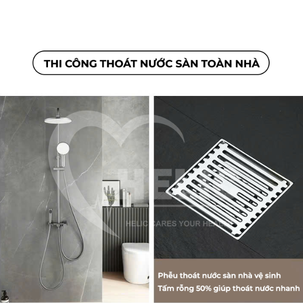 - Thoát sàn dài cho phòng tắm: Tăng diện tích thoát nước, tránh đọng nước, giữ sàn luôn khô thoáng.