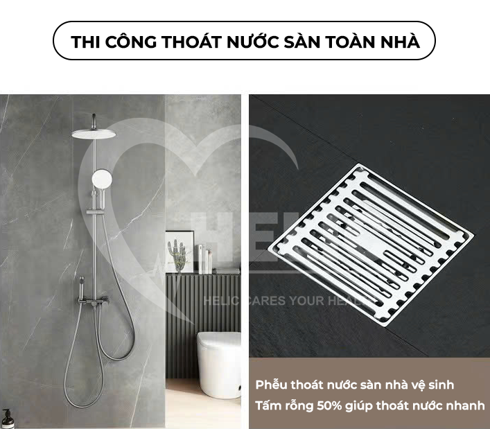 - Thoát sàn dài cho phòng tắm: Tăng diện tích thoát nước, tránh đọng nước, giữ sàn luôn khô thoáng.