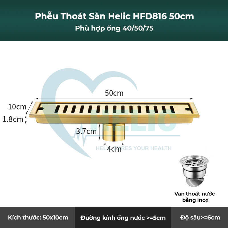 Trong hệ thống thoát nước của mỗi nhà, mỗi công trình, những vấn đề như tắc nghẽn đường ống, nước bẩn trào ngược, mùi hôi khó chịu và côn trùng từ cống thoát nước luôn gây ra nhiều khó chịu, ảnh hưởng đến sự tiện nghi và sức khoẻ. Do đó, phễu thoát sàn Helic HFD816 50x10cm ra đời như một giải pháp thông minh, giúp dễ dàng xử lý triệt để các rắc rối thường gặp trong hệ thống thoát nước. Với thiết kế hiện đại, tính năng vượt trội và độ bền cao, sản phẩm mang đến sự an tâm tuyệt đối cho mọi gia đình, công trình.