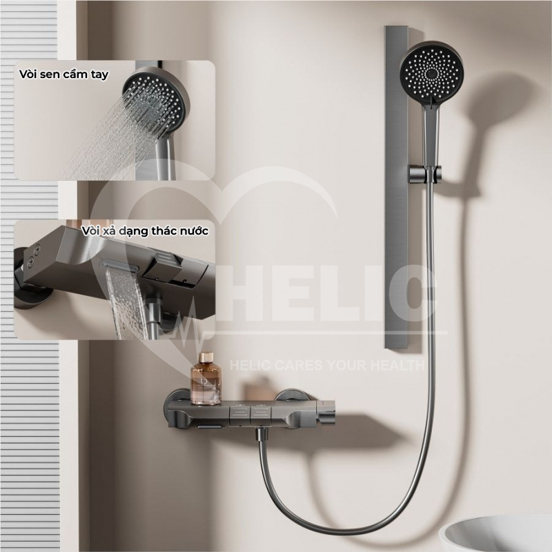 - Vòi sen phím đàn Helic được thiết kế linh hoạt với hai chế độ nước thông minh.